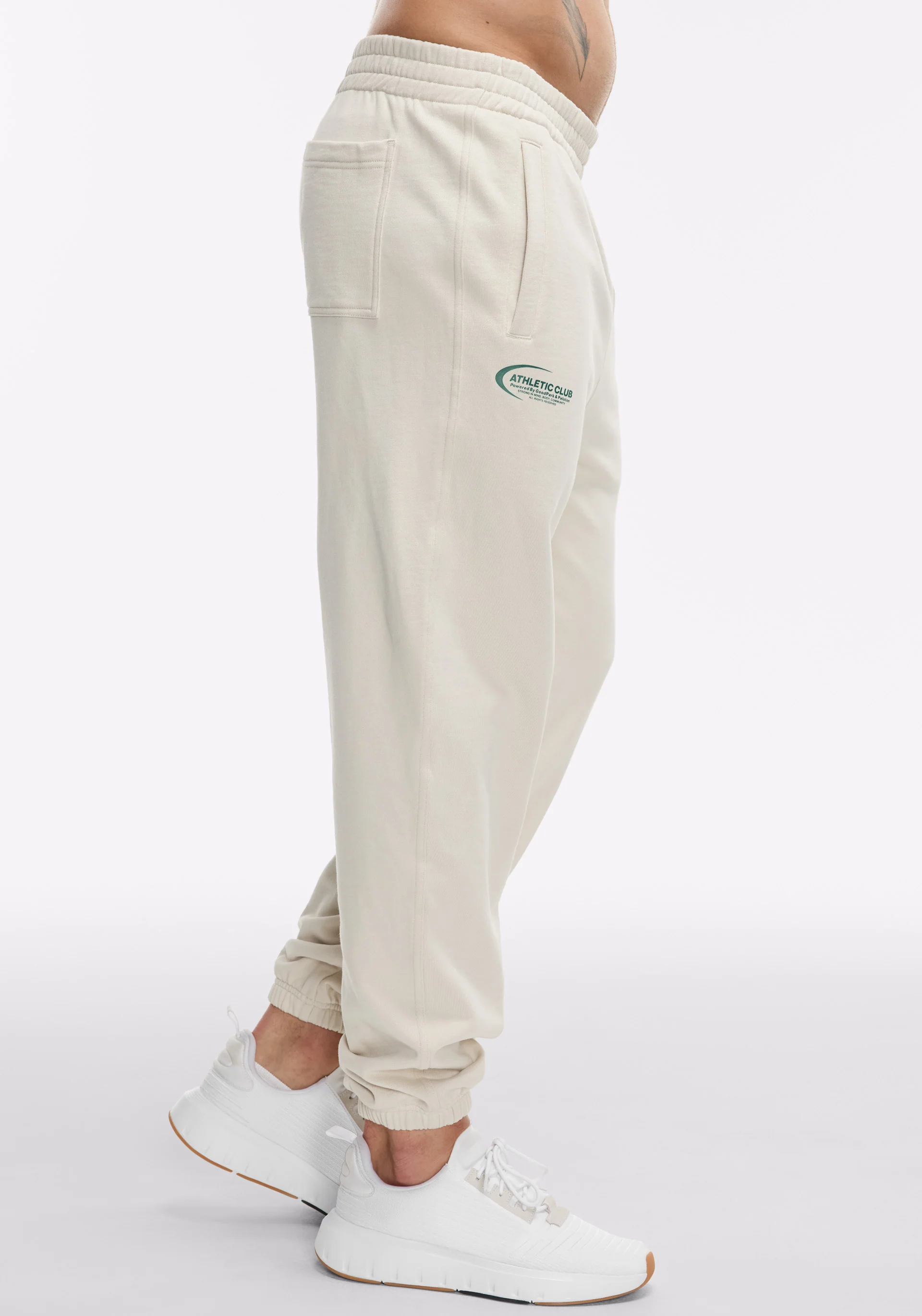 Gender neutral, cotton fleece jogger with side pockets and exterior drawcord