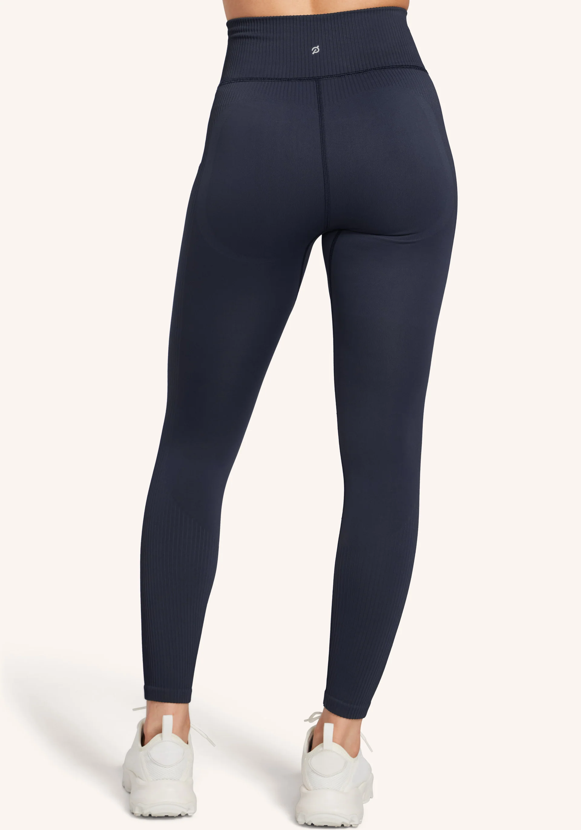 • High rise, 25” inseam legging with contour shaping at back and rib detailing at waist, side seam and lower leg