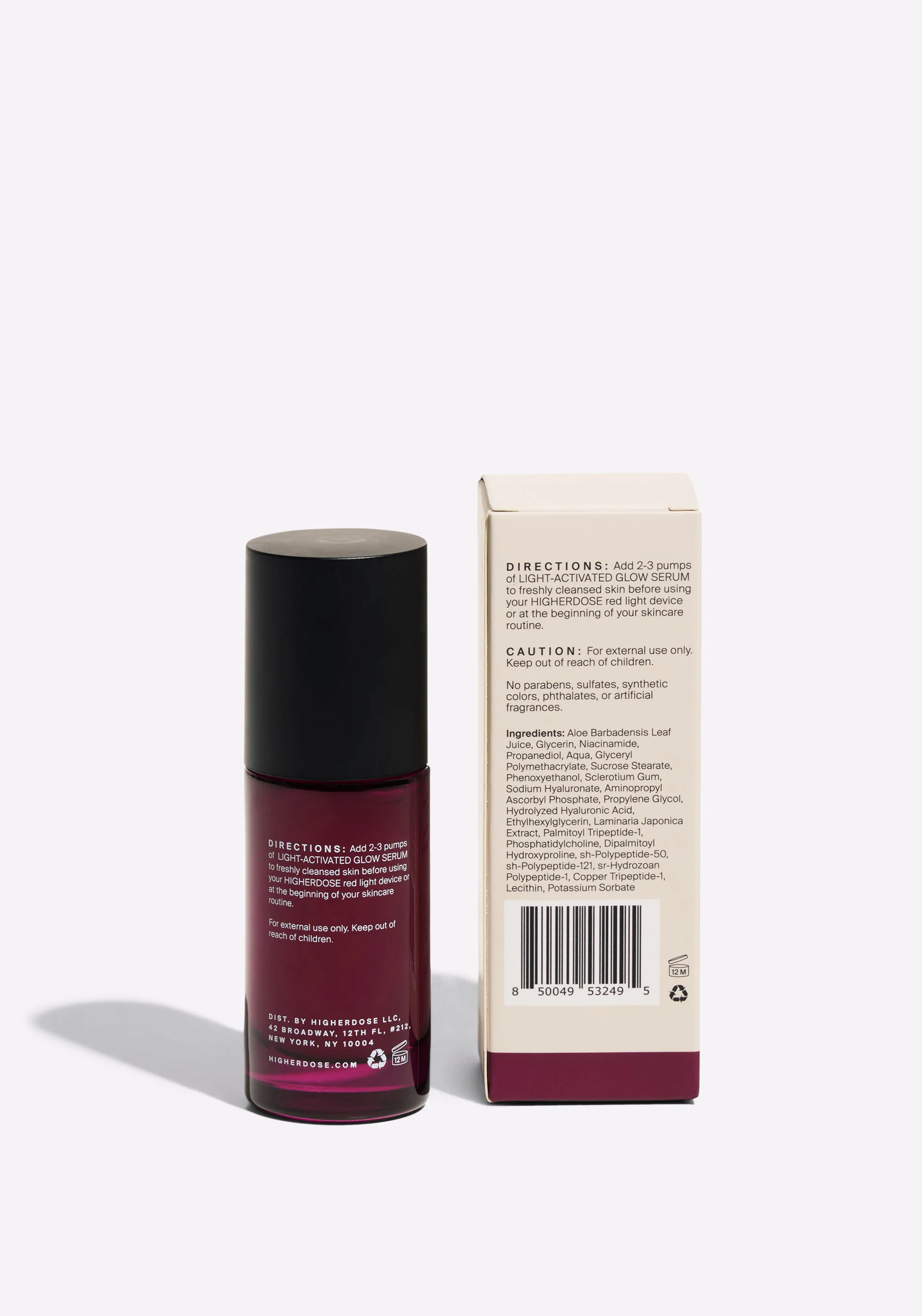 If you are going for a supercharged Glow, secure your HD Red Light Face Mask device to your head and treat skin for a minimum of 10 minutes. The HD Glow Serum’s light-activated ingredients will boost the benefits of this Red Light Therapy session. We recommend using your Mask and Glow Serum together 3-5 times per week.