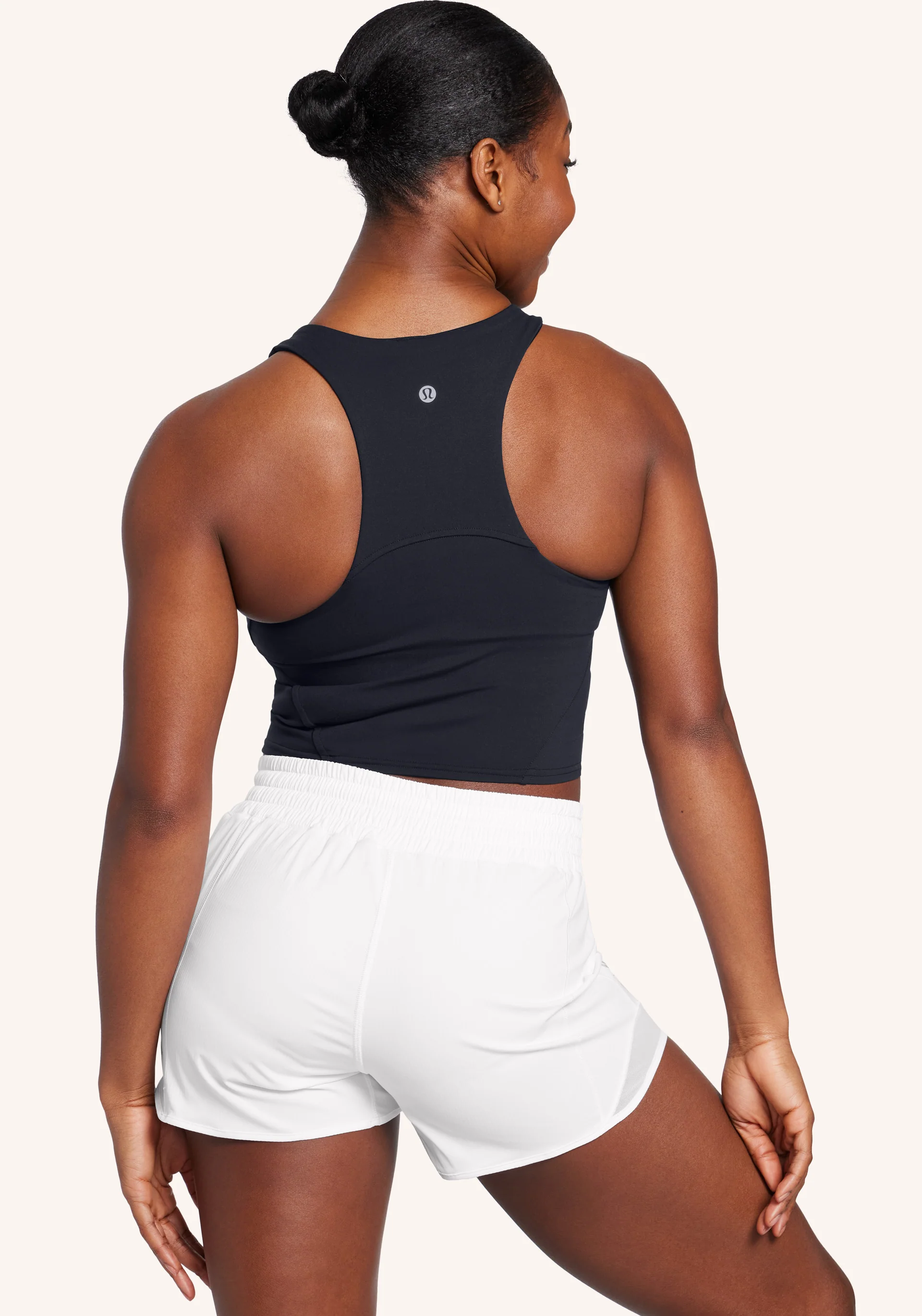 - Medium support, racerback tank with built-in shelf bra for added support and pockets for removable cups