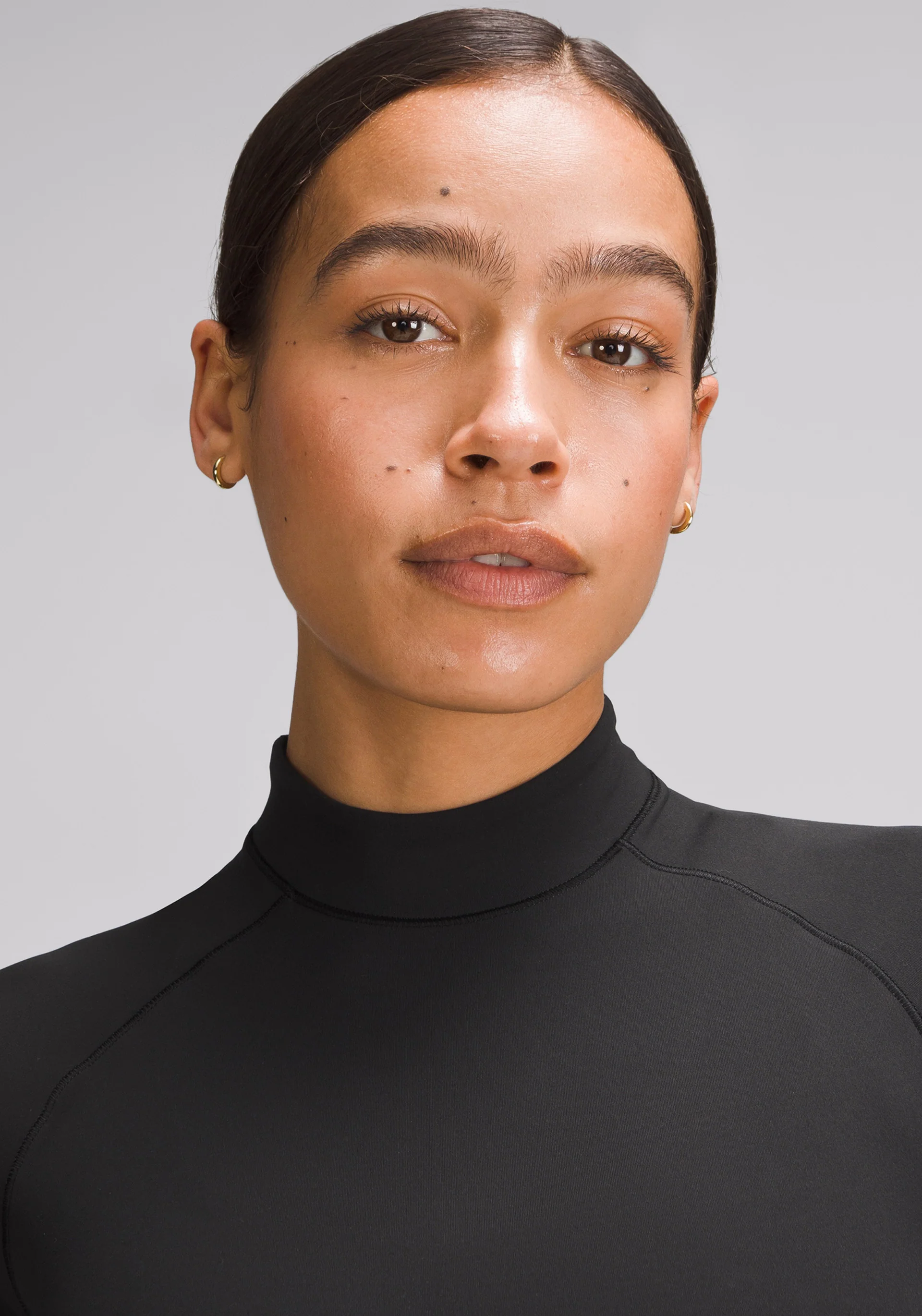 Super-cropped, long sleeve with with mock neck and raglan sleeves
